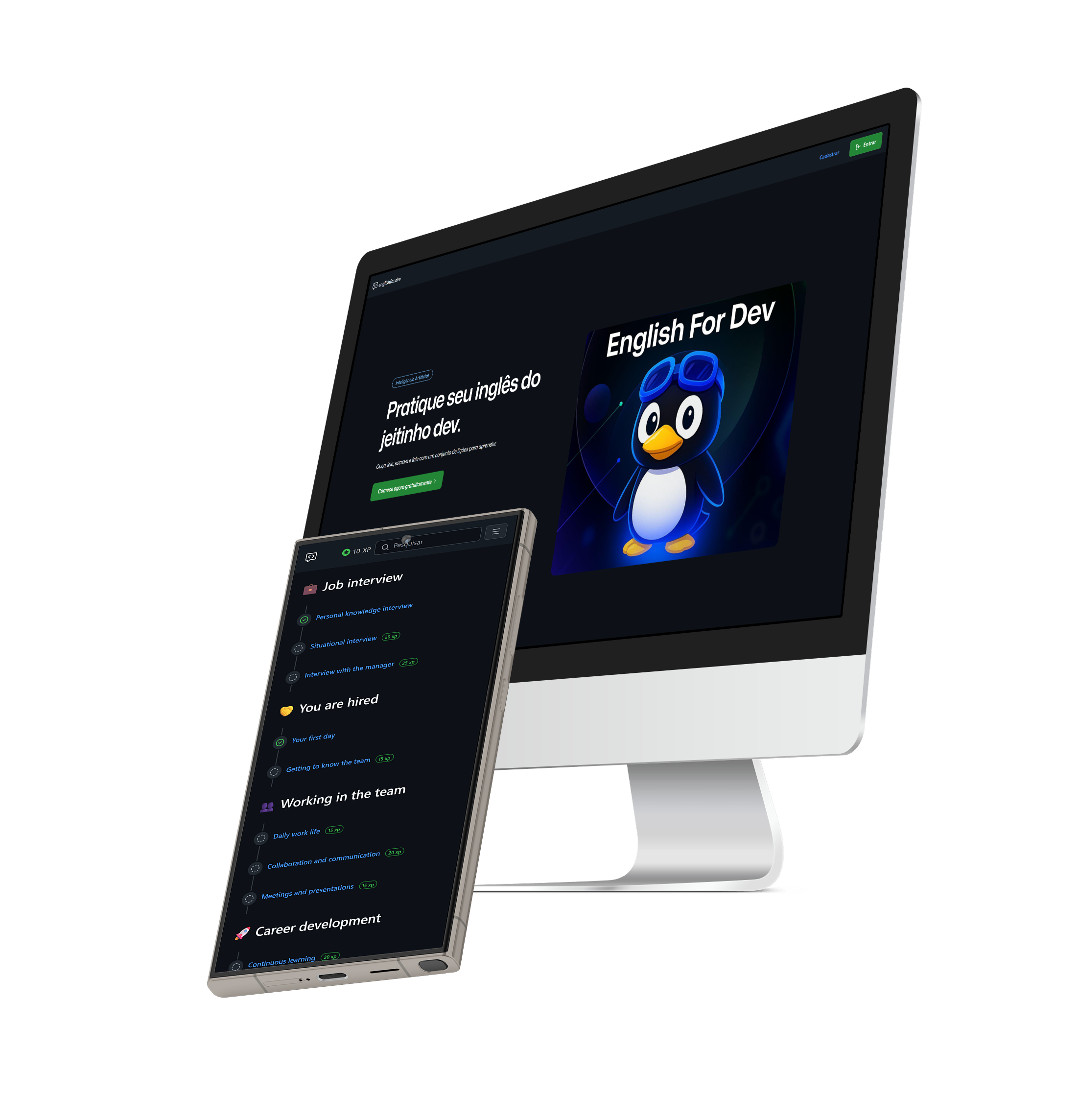 Plataforma "gamificada" focada em auxiliar desenvolvedores a aprimorarem seu vocabulário, habilidades de conversação e pronúncia, usando Inteligência Artificial.