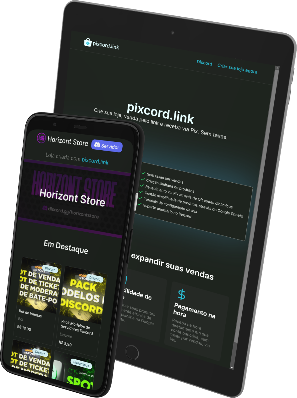 Solução focada em ajudar pessoas que vendem produtos digitais através da plataforma Discord. Crie sua loja virtual personalizada e venda dentro e fora do Discord. Controle seus produtos facilmente através de uma planilha no Google Sheets. Receba na hora diretamente em sua conta bancária, sem taxas por vendas, via Pix.